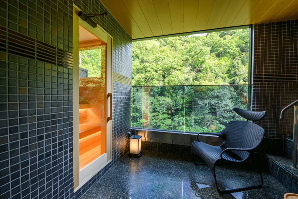 In October 2025, our new “Riverside View Twin Room with Sauna and Open-Air Hot Spring Bath” opened. Please enjoy the relaxation experience with pirivate sauna, followed by refreshing forest air bathing while gazing at the breathtaking scenery of "Yamanaka Onsen".
